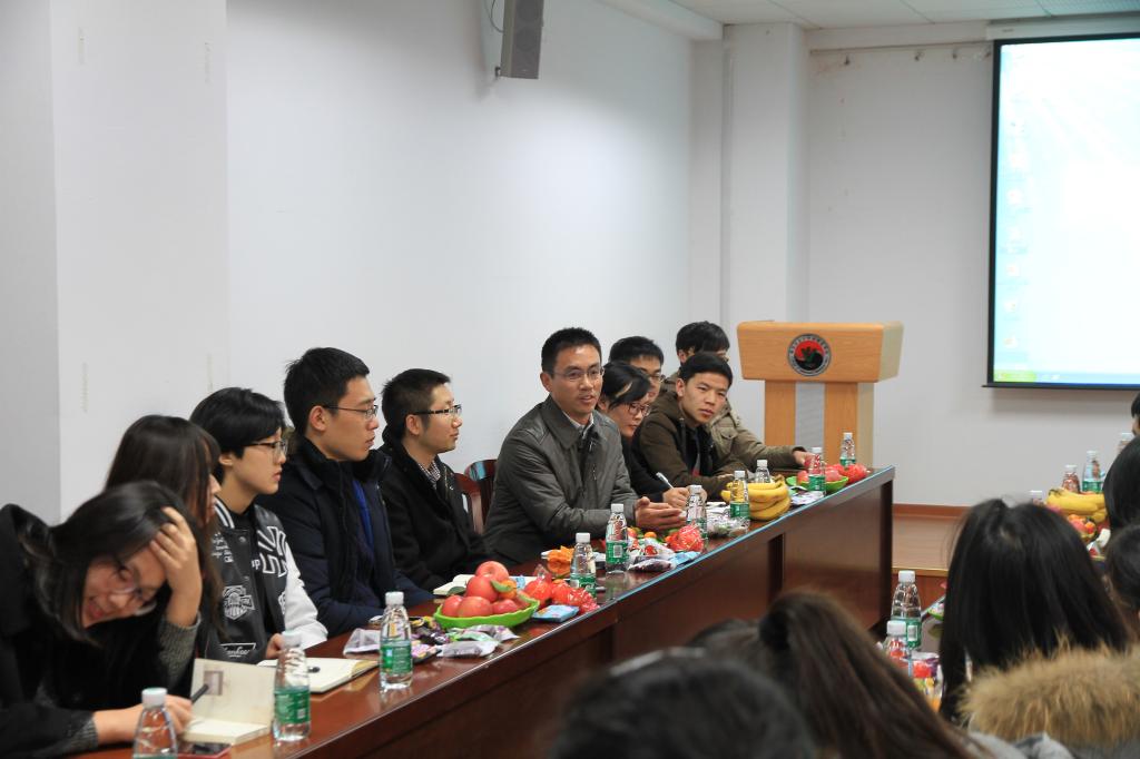 随后,扬州大学动科院第一党支部委员关富康、团委兼职副书记王悦和郭亚文等学生代表,分别从党支部工作和班团建设以及社团联合工作建设等内容向我校师生展开介绍。紧随其后的是轻松活跃的自由讨论时间。两方学生从党建工作、班团建设、学生会工作以及保研经验分享等话题展开了热烈的讨论。一问一答之间,不仅对彼此的学生工作有了更进一步的了解,也加深了彼此之间的情谊。