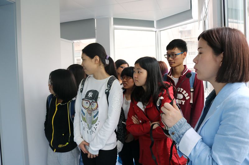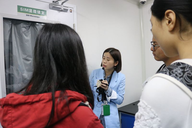 同学们在免疫研究所报告厅集合完毕后,去往实验室参观。由于参观人数过多,同学们自觉分成两队,分别由讲师顾金燕、实验师雷静带领。同学们依次参观了共聚焦显微镜、超高分辨显微镜STROM、超高分辨显微镜SIM、洁净细胞培养室、悬浮细胞培养室、负压实验室以及实验室的办公区。