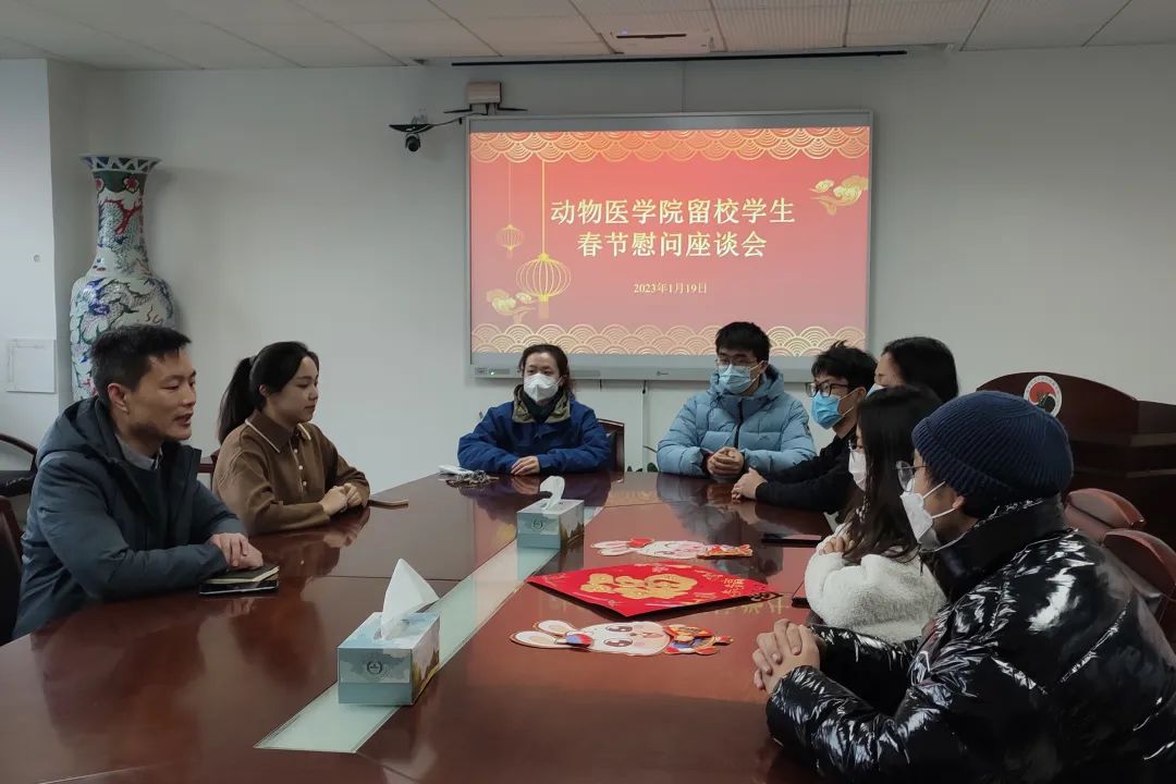 金虎辞岁,玉兔迎新。在春节来临之际,1月19日下午,我院党委副书记李云锋、辅导员汪明佳慰问学院全体寒假留校学生,代表学院为同学们送上关怀并致以节日的祝福。